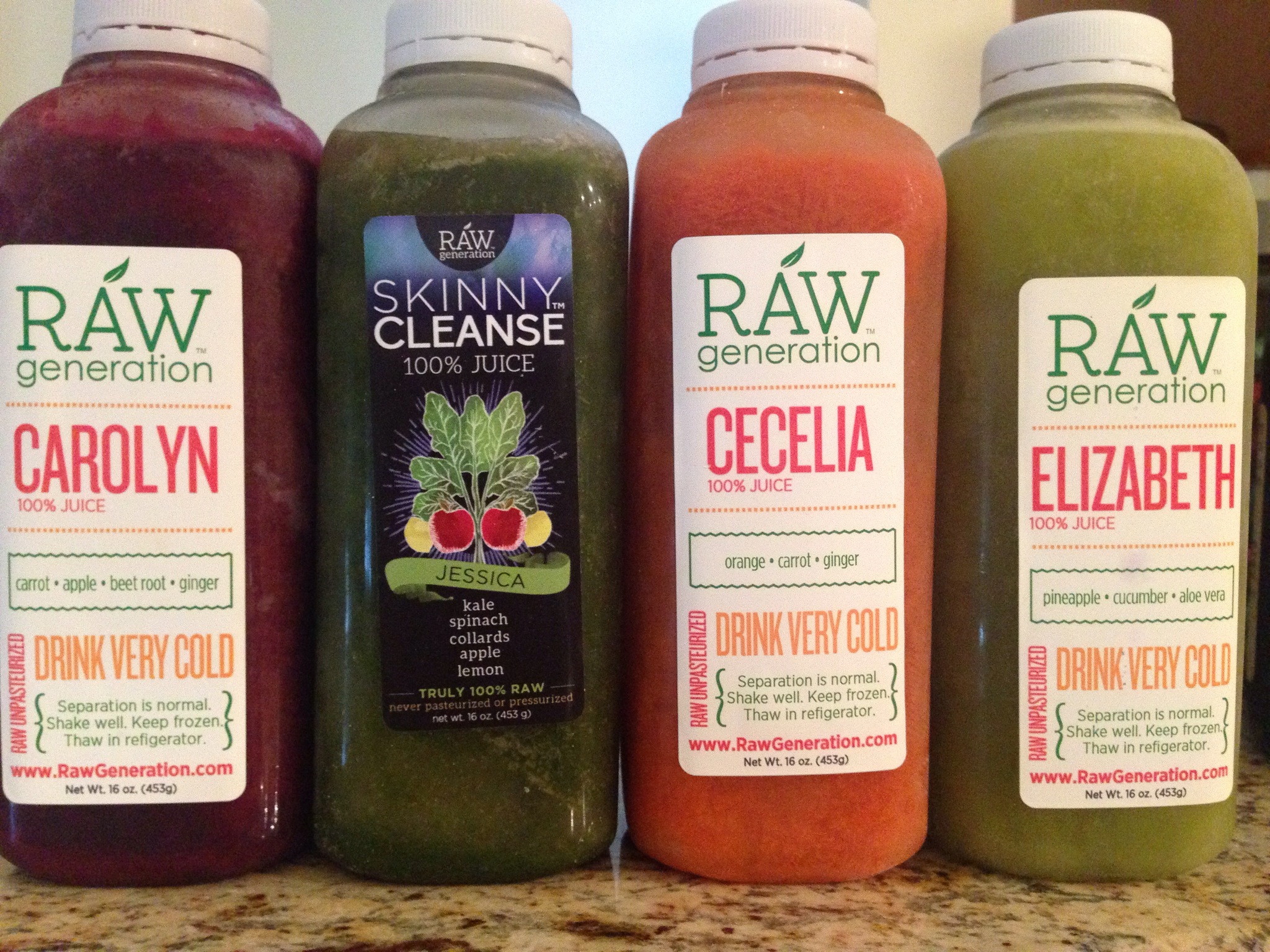 I know I’ve been pretty MIA recently, but I have a fabulous excuse! I got married! Yay! Now, I’ll be honest here- I’ve been married now for a month. It’s been great, but it has completely taken a hit on my body! Between going out to eat and celebrating, not to mention being maid of honor in one of my best friend’s wedding last week, I haven’t been eating well at all. I’m pretty sure there has been a constant gluten exposure as well, but I haven’t quite figured out what the source has been. One of my friends recommended trying a juice cleanse for a few days and after researching a few, I decided to try the Raw Generation Skinny Cleanse. I honestly wasn’t planning on doing a cleanse after talking to my friend, but then suddenly came across a coupon code online. I figured this was a sign and, after all, it couldn’t hurt to try it. I have to admit though that I’m not very good with these diets. I’m from the Midwest and LOVE my meat and potatoes (and wine). Yeah, I use my nutribullet at home to make some yummy smoothies and “juice”, but not every day and certainly not for every meal.